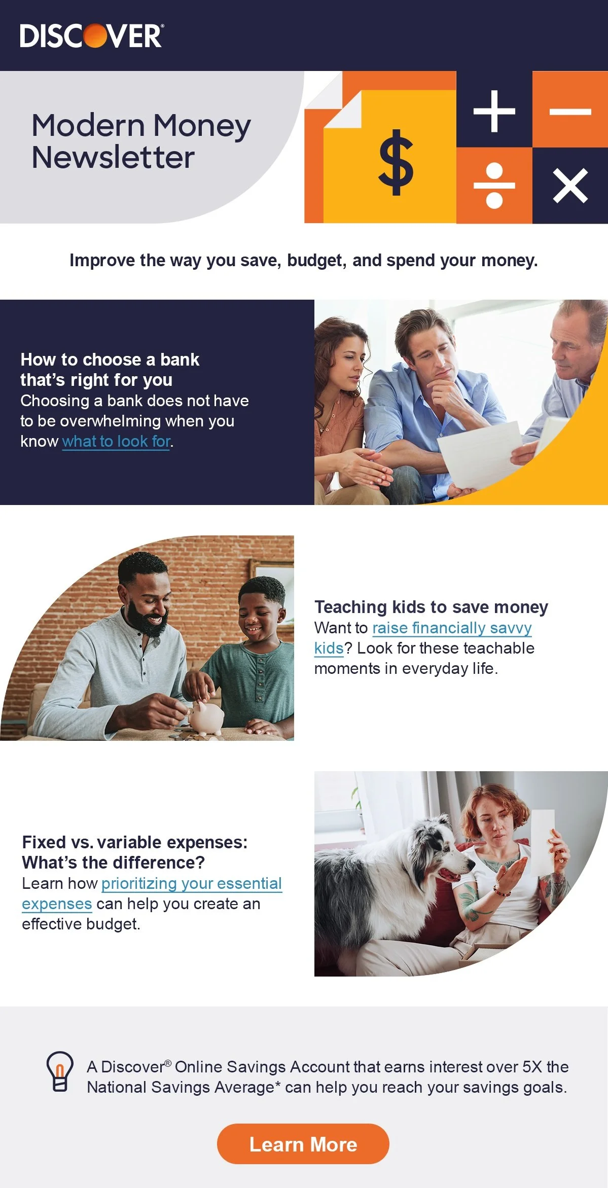To engage users across different age groups, interests, and cultures, we showcased scenarios such as parents teaching children to save, professionals managing budgets with the Discover app, college students planning CD deposits, and pet owners tracking expenses.