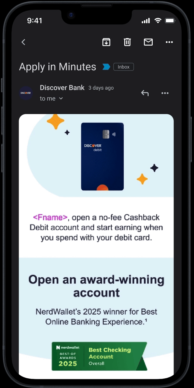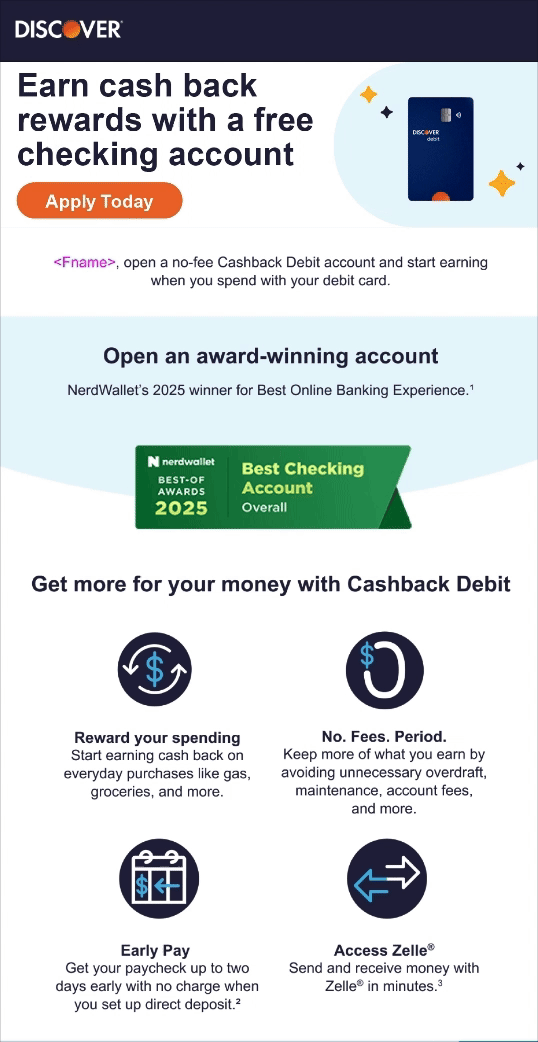We explored various layouts and headlines to highlight Discover as NerdWallet’s 2025 winner for Best Online Banking Experience and Best Checking Account.